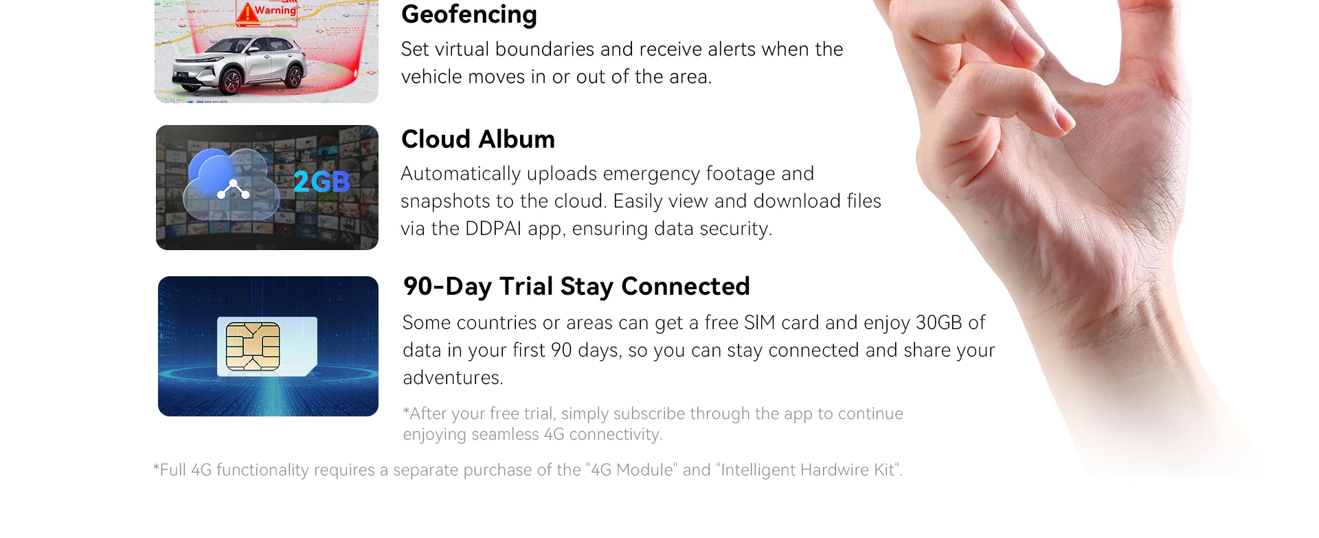 *Full 4G functionality requires a separate purchase of the "4G Module" and "intelligent Hardwire Kit"