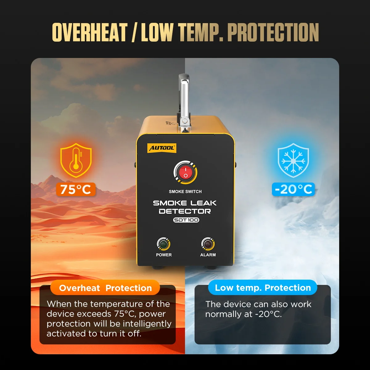 [Overheat & Anti-frost protection] The detector has smart protector. If it exceeds working limit,for e.g over 75℃. It will power off automatically.